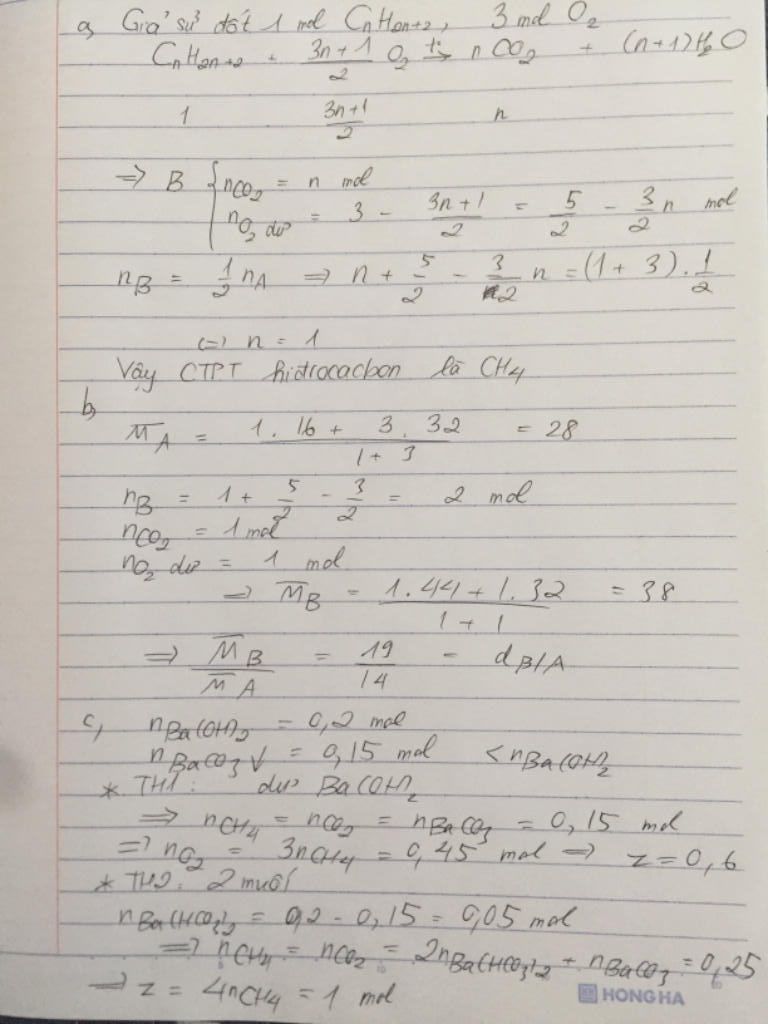 a. Xác định công thức phân tử của hydrocacbon.