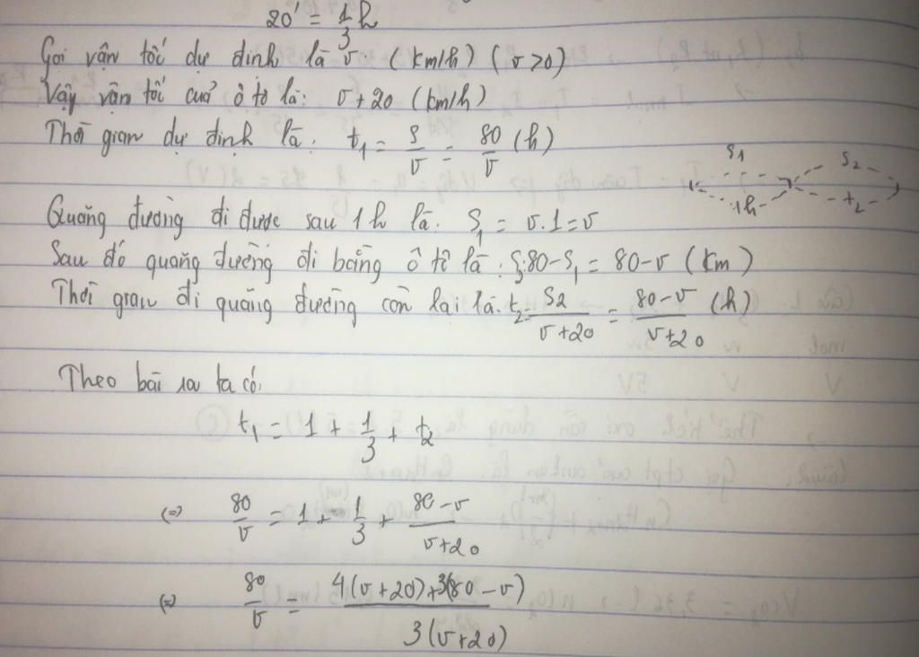 Đổi $20$ phút =$\dfrac{1}{3}$ giờ
