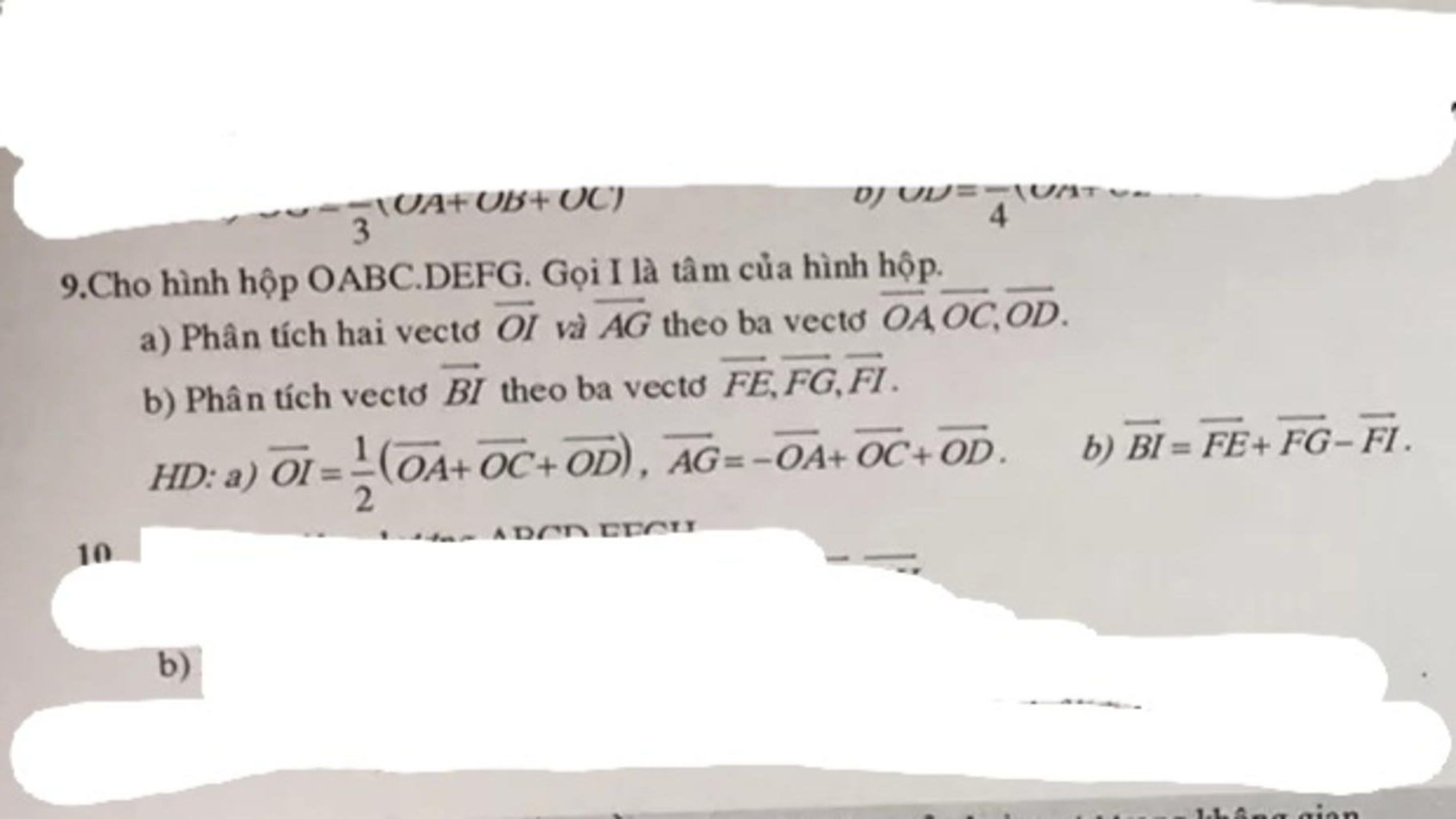 `b, \vec{BI}` theo `\vec{FE}, \vec{FG}, \vec{FI}`