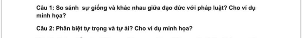 Câu 1 Giống nhau:đều là hệ thống các quy tắc xử sự chung ;chuẩn mực của xã hội giúp con người tư giác đều chỉnh hành vi của mình sao cho phù hợp với lợi ích cộng đồng xã hội