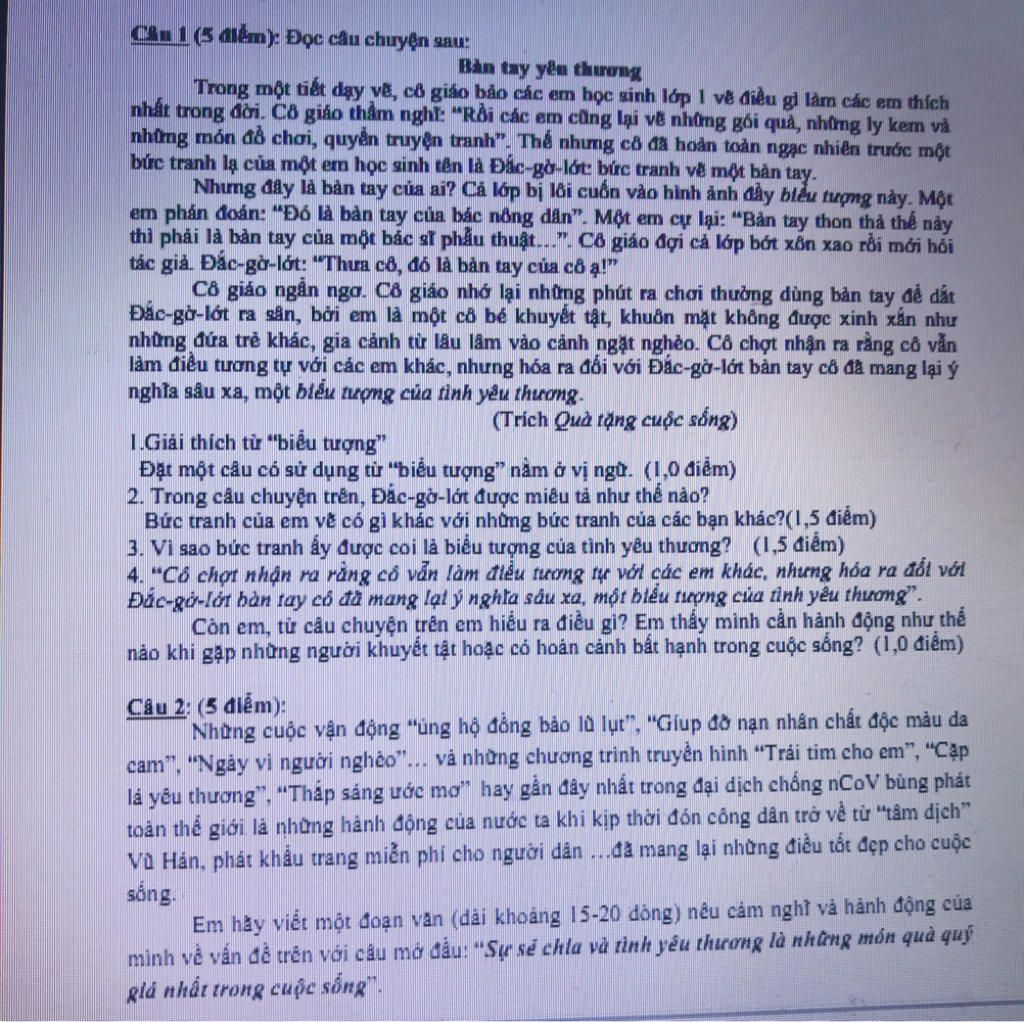 Bức tranh của cô bé khác các bạn ở chỗ em không vẽ hững gói quà, ly kem, em vẽ hình ảnh một bàn tay.