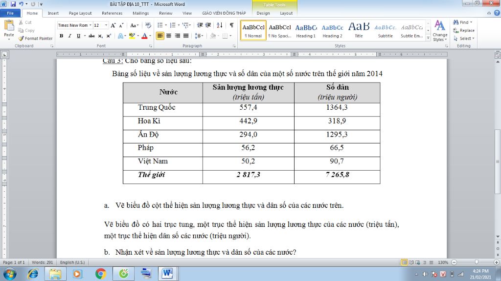 BÀI TẬP ĐỊA 10 TTT - Microsoft Word
