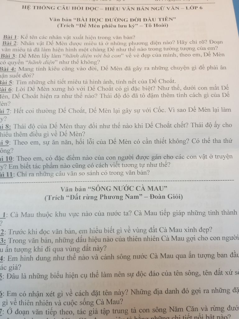 Câu 1 (trang 10 sgk Ngữ Văn 6 tập 2)