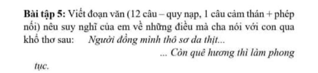 Bài tập 5: Viết đoạn văn (12 câu - quy nạp, 1 câu cảm thán + phép