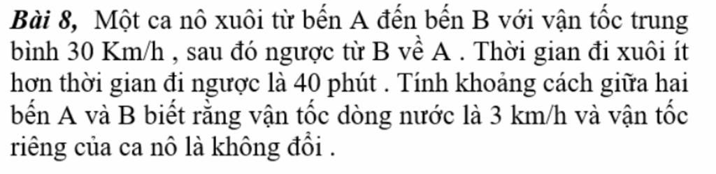 Có thời gian xuôi ít hơn ngược là 40 phút ta có :
