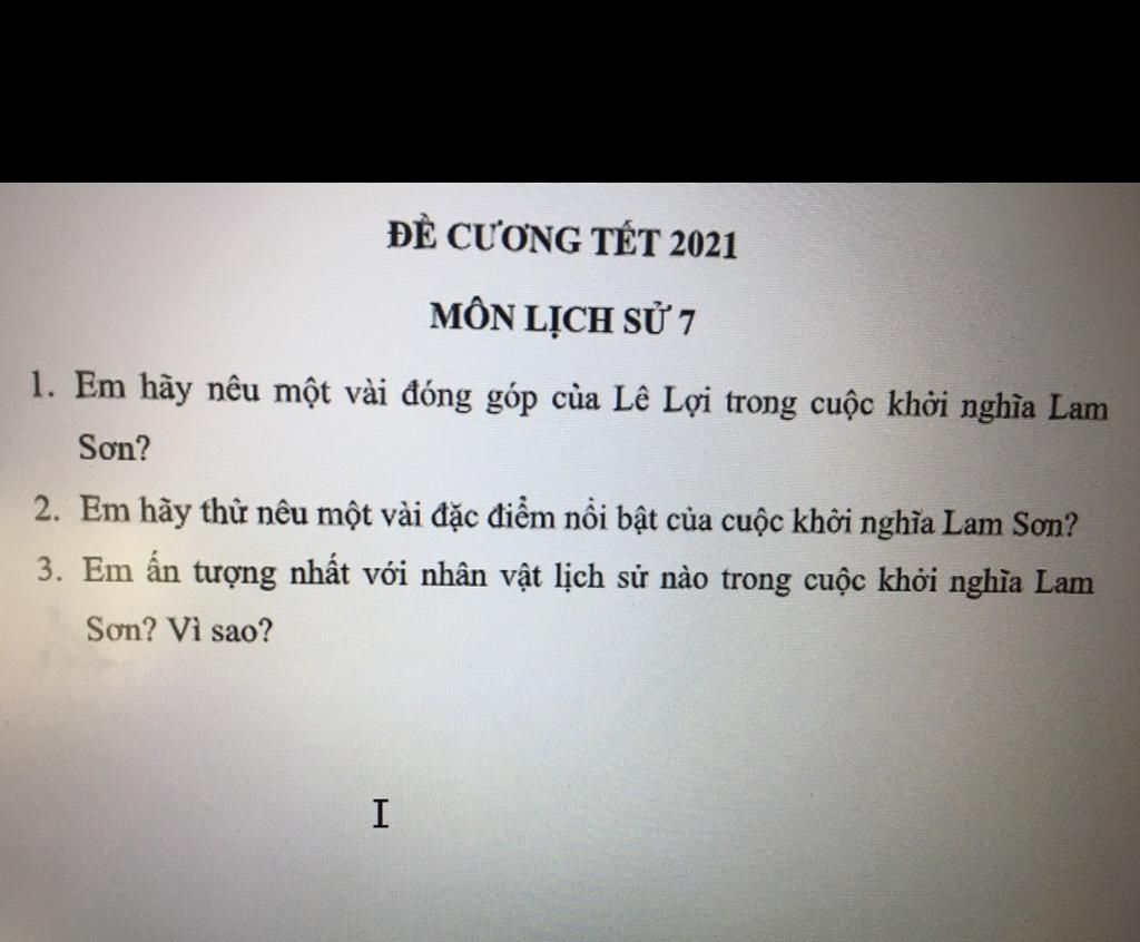 2. 1 vài đặc điểm nổi bật của cuộc khởi nghĩa lam sơn: thắng lợi hoàn toàn, đc sự ủng hộ của nhân dân, giải phóng những nơi bị chiếm đóng