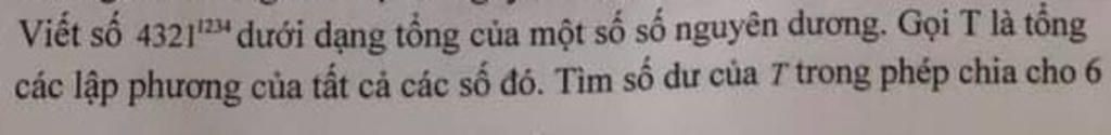 $\to 4321^{1234}$ chia $3$ dư $1$