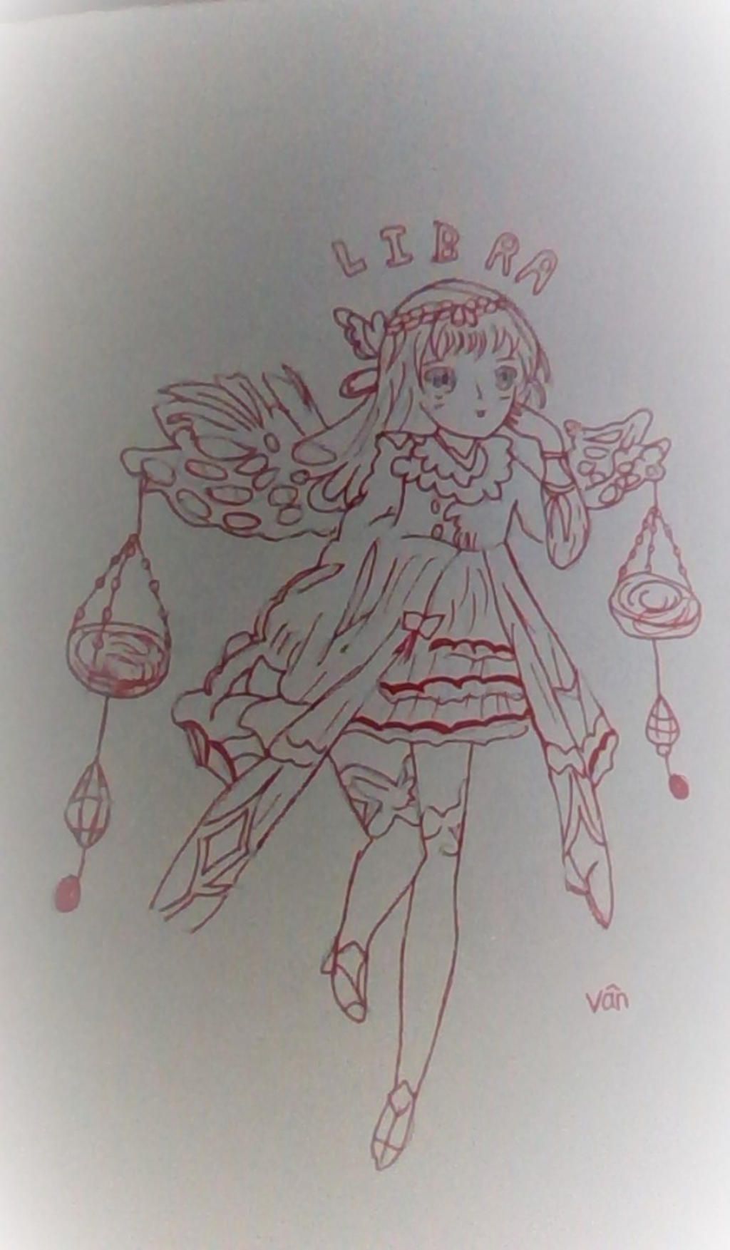 Cung thiên bình là cung thăng bằng nên mình vẽ mỗi tay cầm một cái cân nhe.