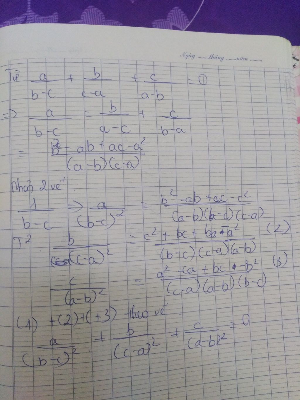 =>a/(b-c) =-b/(c-a)-c/(a-b) =b/(a-b)-c/(c-a) =(-ab+b²-c²+ac)/[(a-b)(c-a)]