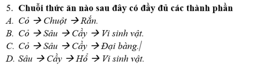 5. Chuỗi thức ăn có đầy đủ các thành phần: