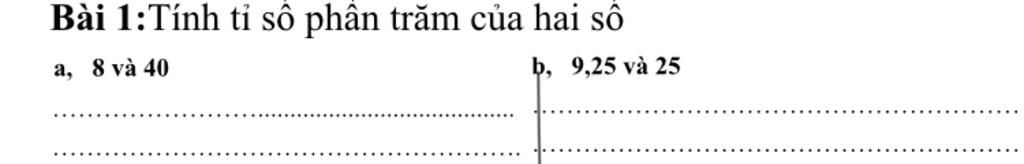 `a//` Tỉ số phần trăm của `8` và `40` là :