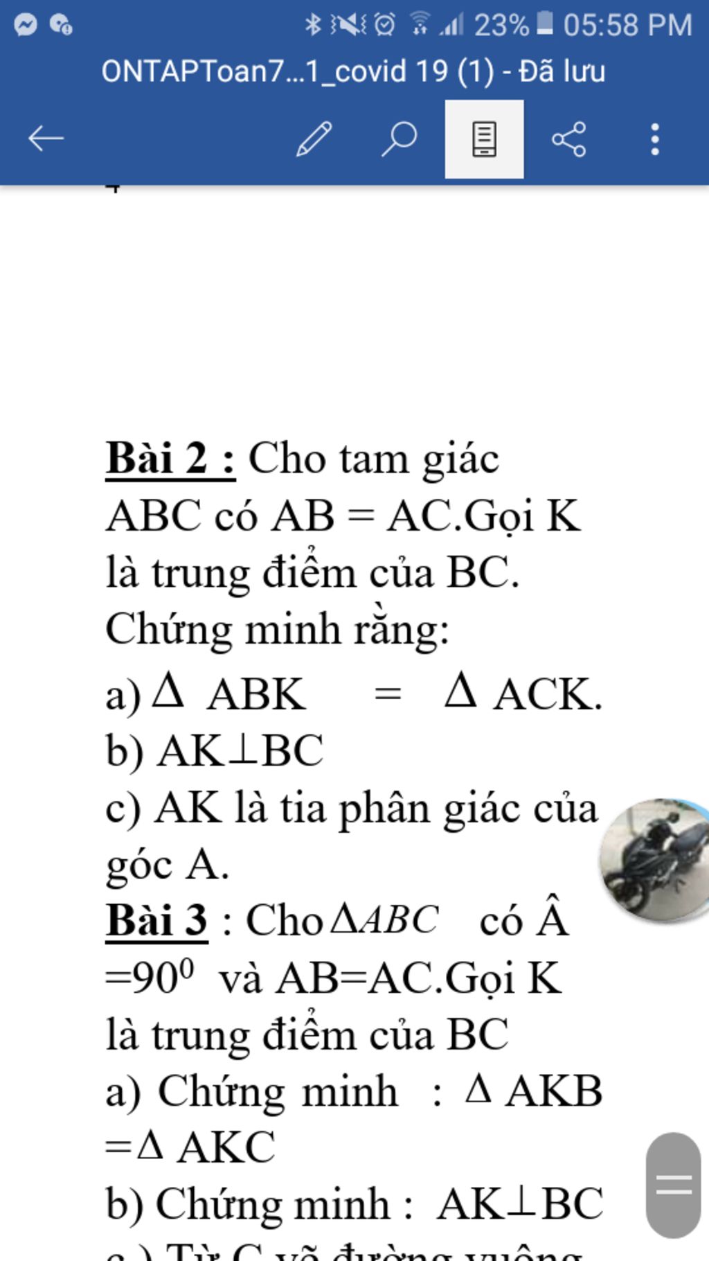 `-> hat{AKB} = hat{AKC}` (2 góc tương ứng)