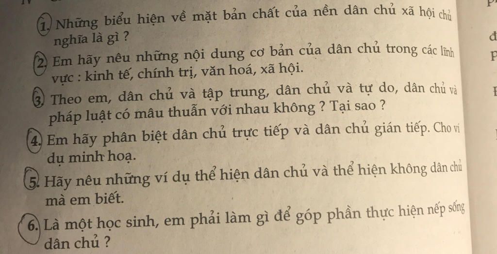 5. Hãy nêu những ví dụ thế hiện dân chủ và thế hiện không dân chủ