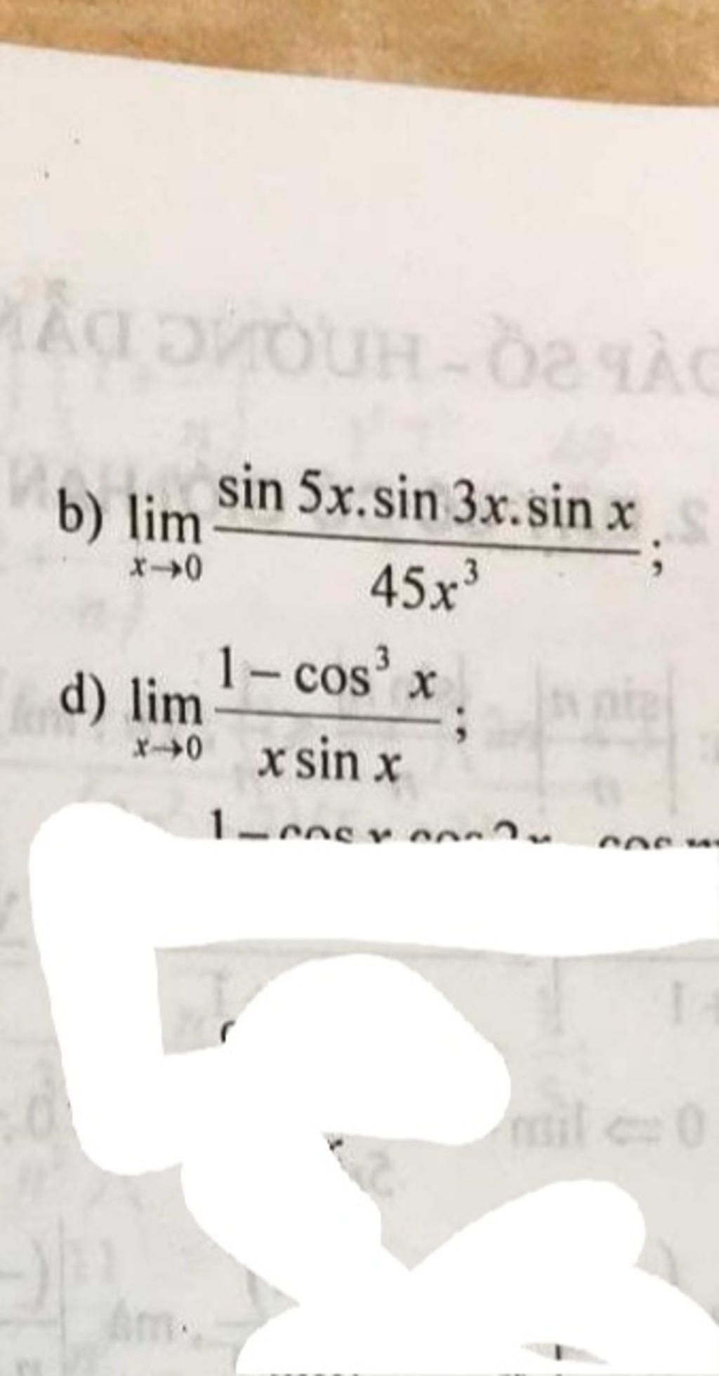 $b)\quad \lim\limits_{x\to 0}\dfrac{\sin5x.\sin3x.\sin x}{45x^3}$