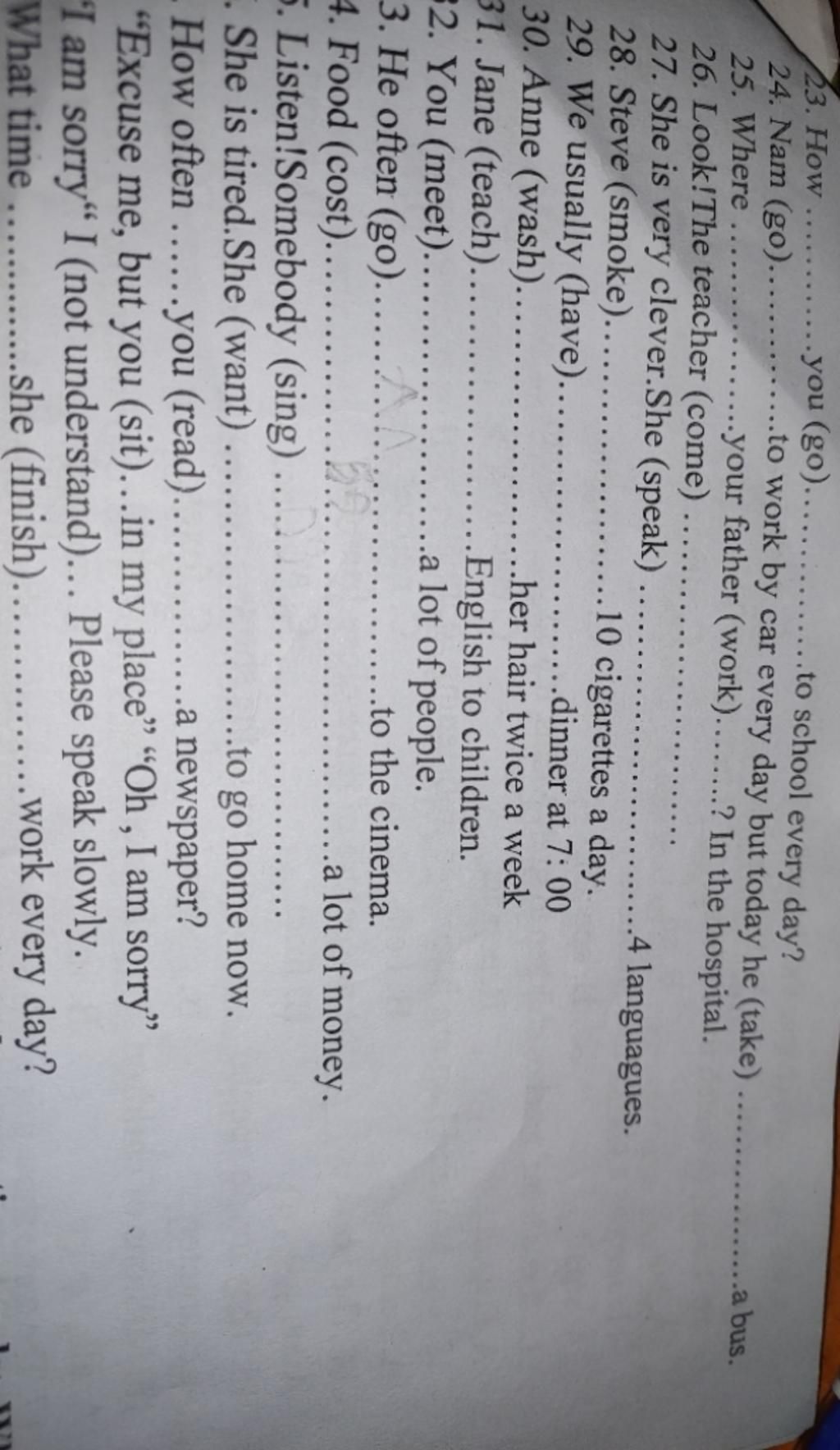 24. every day $\to$ HTĐ - today (khoảng thời gian của hoạt động ngắn) $\to$ HTĐ.