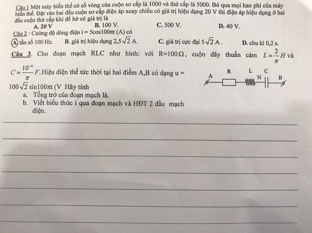 \Rightarrow Z = \sqrt {{R^2} + {{({Z_L} - {Z_C})}^2}} = 100\sqrt 2 (\Omega )