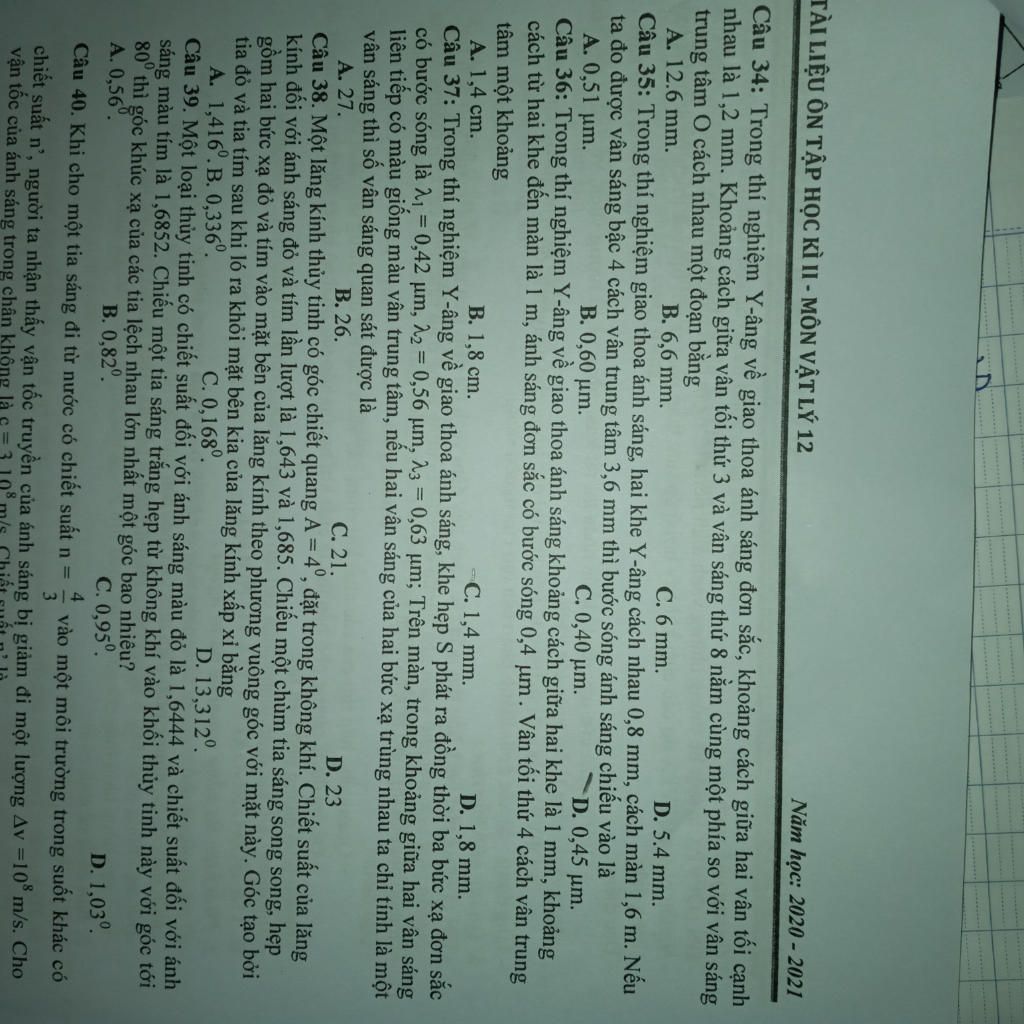 Khoảng cách $2$ vân tối cạnh nhau là một khoảng vân , tương ứng với $i$