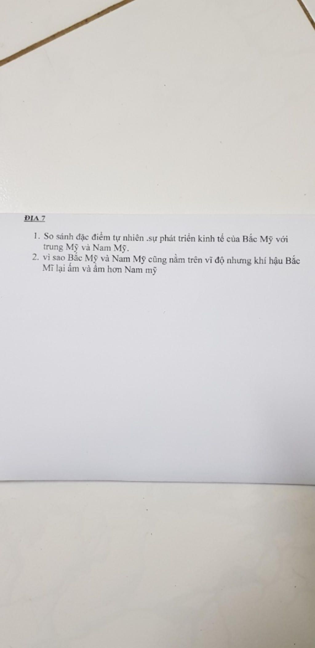 → Nam mĩ : Trồng cây công nghiệp, chăn nuôi gia súc, du lịch phát triển,..
