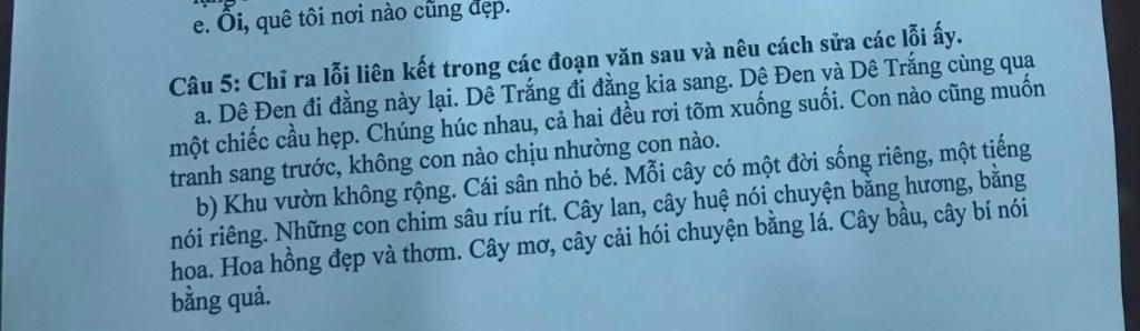b, Lỗi về ý trong các câu rời rạc, không liên kết, không logic với nhau.