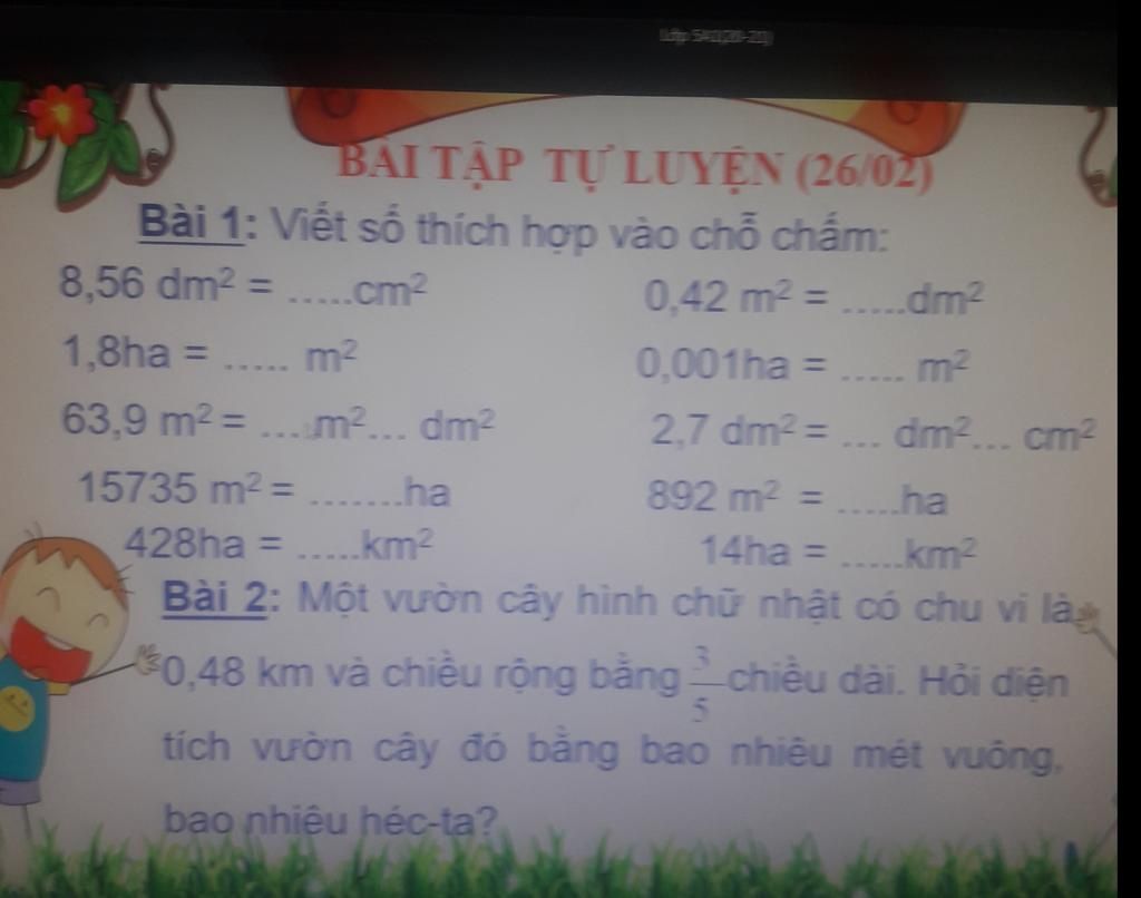 ĐS: $13500m²$ ; $1,35ha$