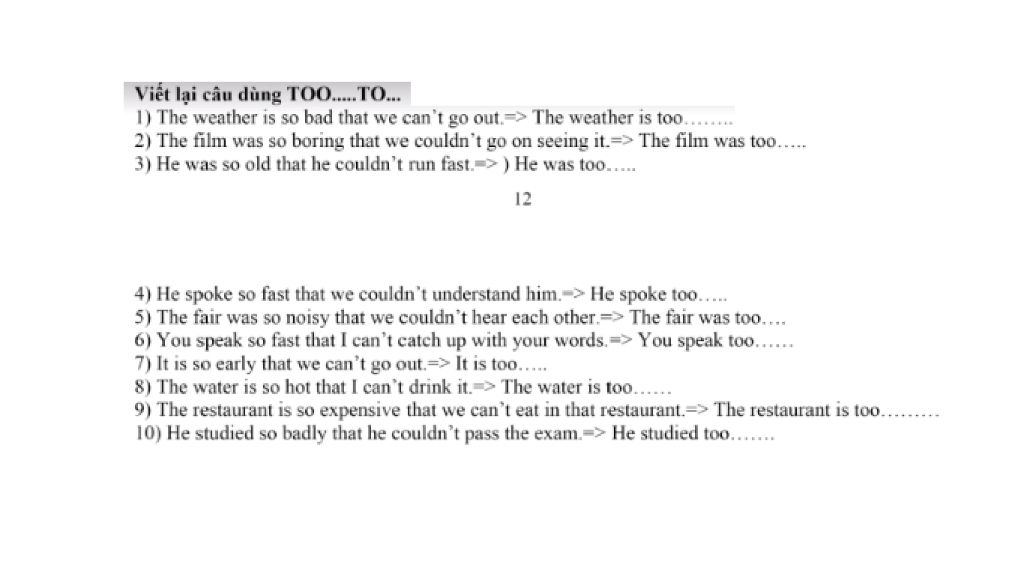 9. The restaurant is too expensive for us to eat in that restaurant.