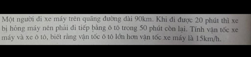 Gọi vận tốc xe máy là x ( km/h) và vận tốc ô tô là y ( km/h)