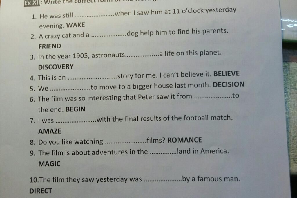 1. awake Sau động từ tobe “was” cần một tính từ. wake (v): thức giấc => awake (a): thức Anh ấy vẫn còn thức khi tôi gặp anh ấy lúc 11 giờ tối hôm qua.