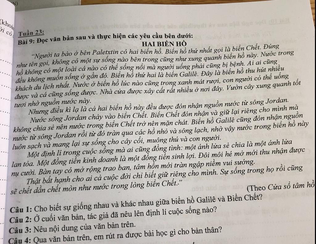 Điểm giống nhau của biển Galile và biển Chết đó là đều được nhận nguồn nước từ sông Jordan.