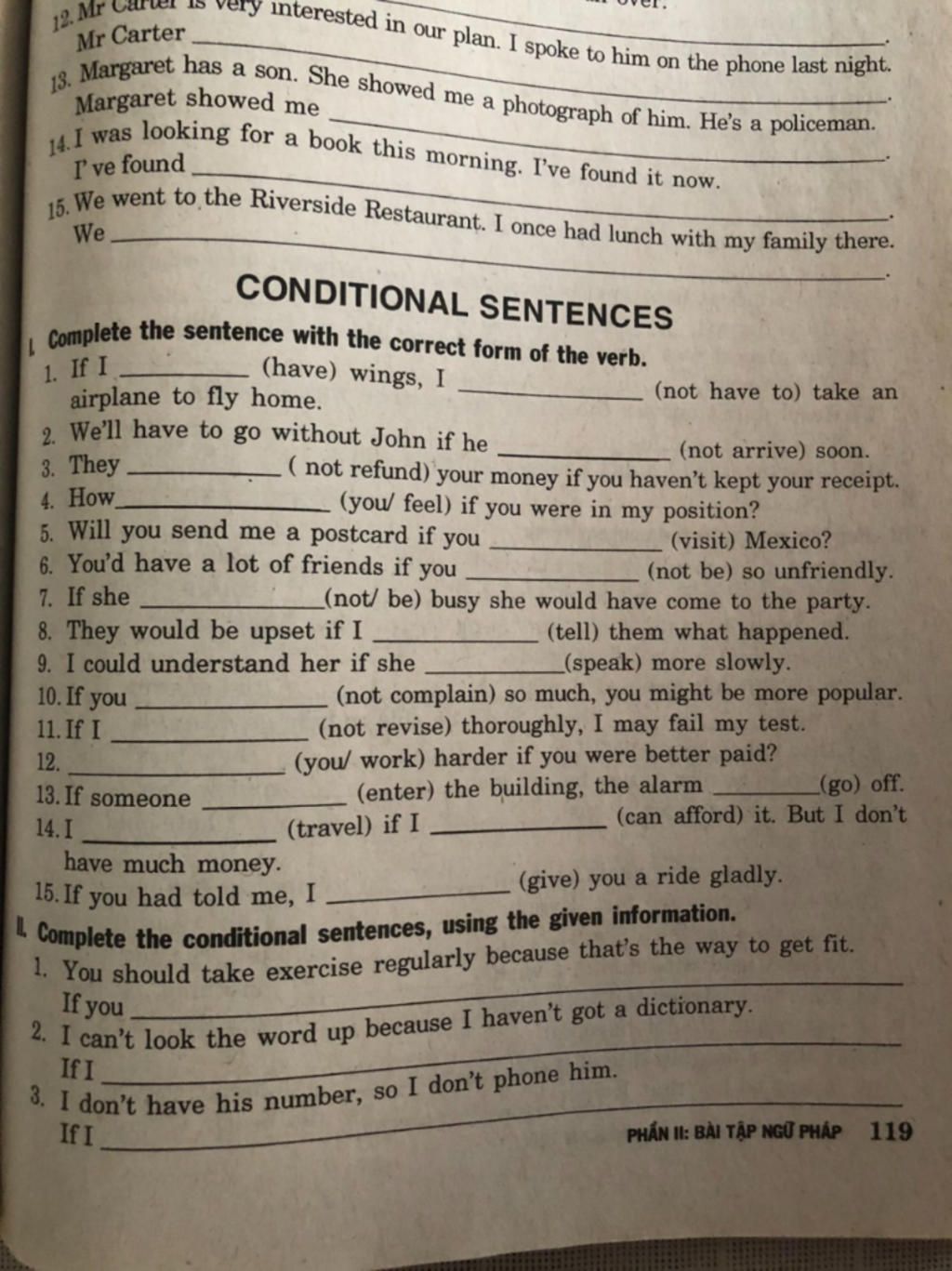 15. If I had had an umbrella, I wouldn't have got very wet in the rain.