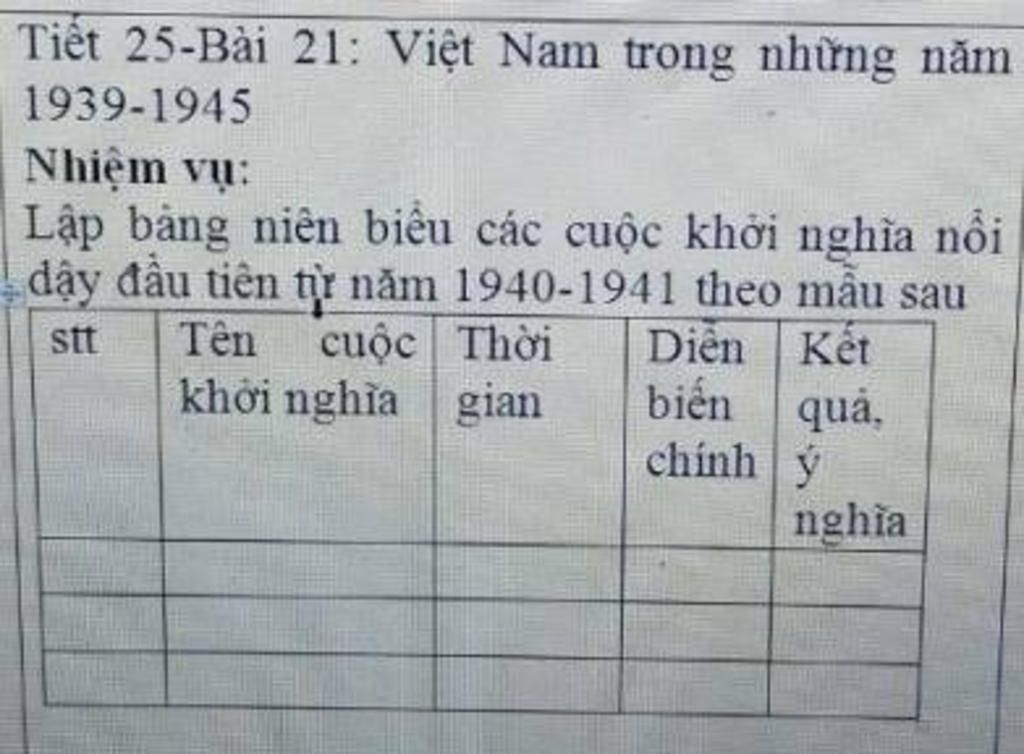 Bảng niên biểu các cuộc khởi nghĩa nổi dậy đầu tiên từ năm 1940 - 1941