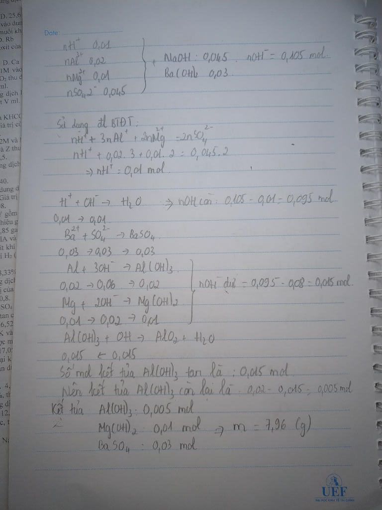 $n_{H^+}=2n_{SO_4^{2-}}-2n_{Mg^{2+}}-3n_{Al^{3+}}=0,01(mol)$
