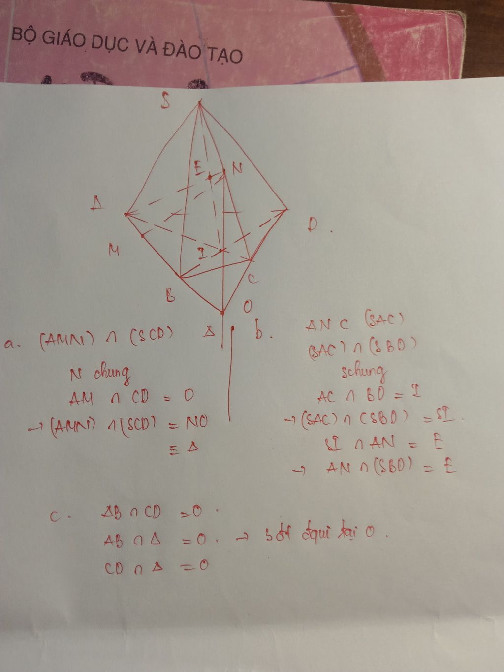 a, Tìm giao ∆ tuyến của mặt phẳng AMN và mặt phẳng SCD