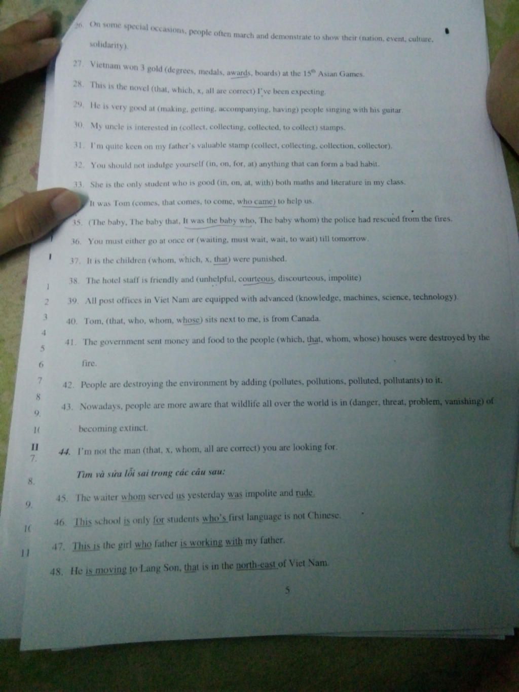 Chọn đáp án đúng để hoàn thành các câu sau: