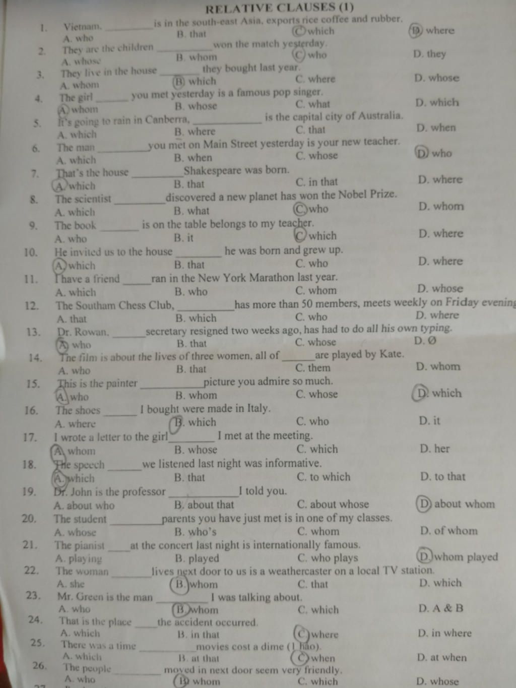 Ủa bạn ơi câu 26 sao who đc bạn phải whom chứ