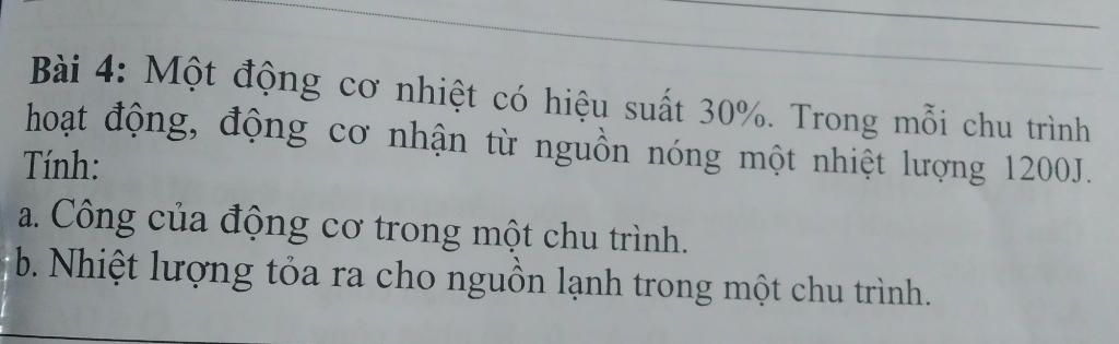 b. Nhiệt lượng tỏa ra cho nguồn lạnh là: