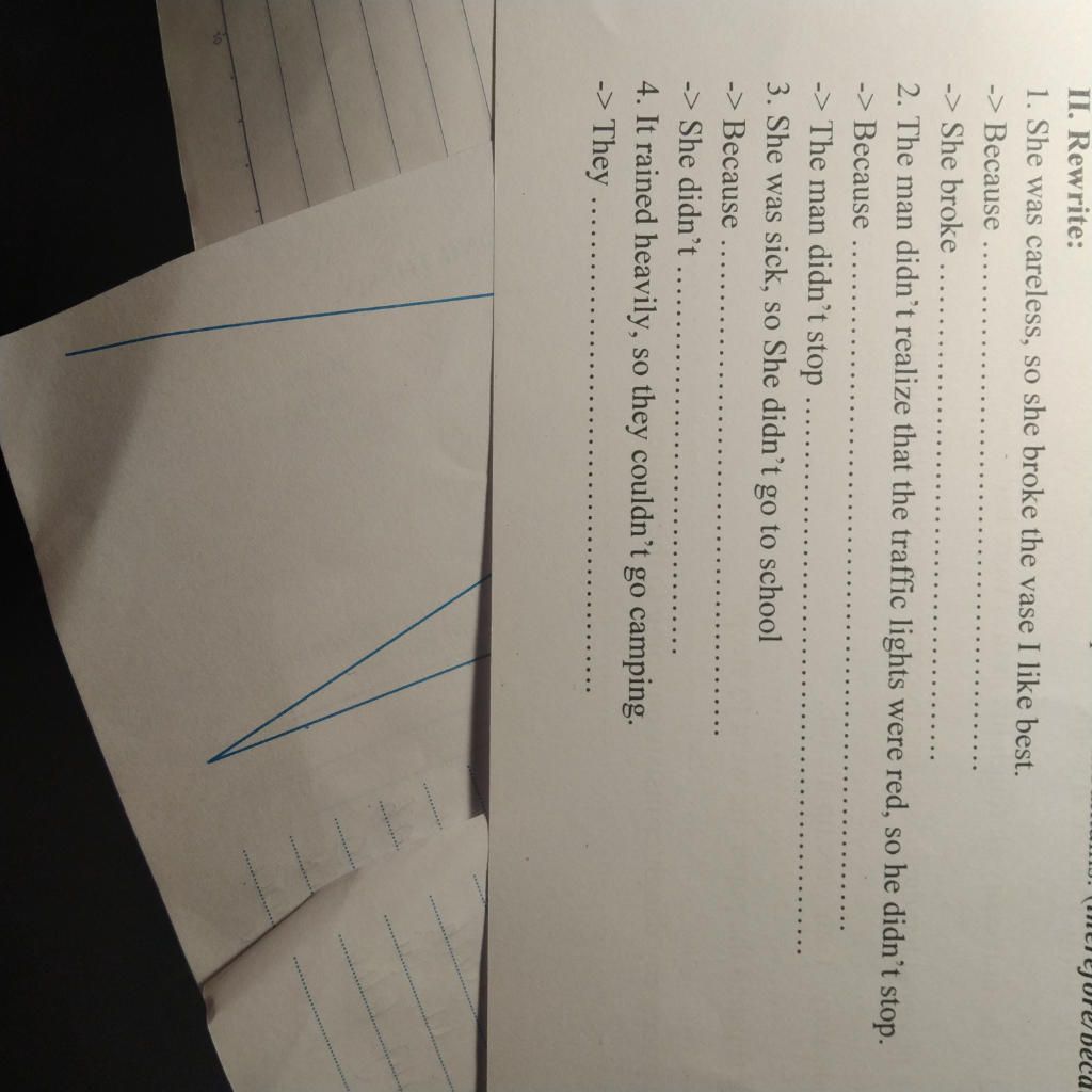 8. Because of being sick, he couldn't go camping.