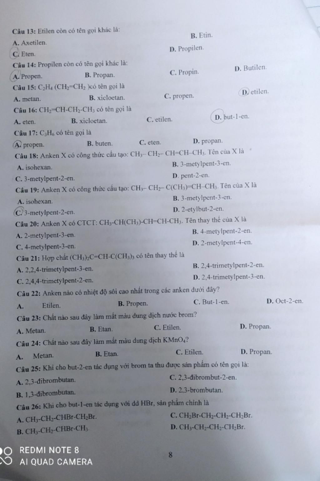 Câu 21: $C$. 2,4,4-trimetylpent-2-en