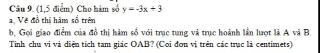 Câu 9. (1,5 điểm) Cho hàm số y= -3x +3