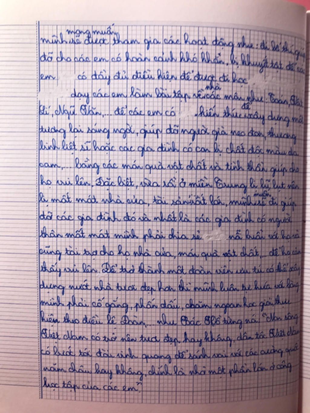 Lan ơi, tớ viết lá thư này để thông báo cho cậu một chuyện cực kỳ vui và hạnh phúc đó là tớ đã chính thức được đứng vào hàng ngũ của Đoàn viên của Đoàn Thanh niên Cộng sản Hồ Chí Minh rồi! Tớ cảm thấy cực kỳ vui sướng nên tớ viết lá thư này để bày tỏ niềm vui ấy với cậu, vì cậu đã được kết nạp Đoàn trước tớ mà!