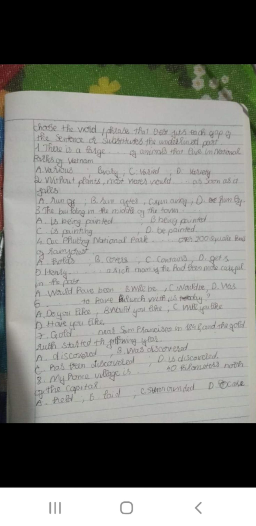 I. Choose the word/ phrase that best fits each gap of the sentence or substitutes the underlined part: