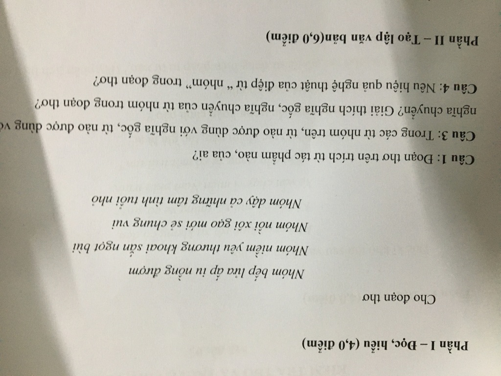Câu 1. Đoạn thơ trên trong tác phẩm " Bếp lửa " của Bằng Việt