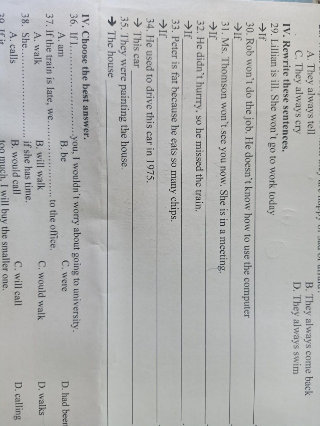 If + S + V(ed) + ..., S + would/ could/ might + V.inf +...