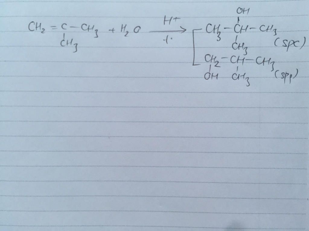 CH2=CH(CH3)CH3 + H-OH =>CH3C(OH)(CH3)CH3(SPC)