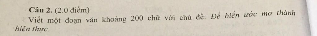 Để hiện thực hóa ước mơ của chính bản thân mình, mỗi người chúng ta cần có đam mê và nỗ lực đủ lớn. Thật vậy, ước mơ chính là thứ thật quan trọng, đẹp đẽ và thiêng liêng trong cuộc sống của mỗi người. Phải chăng ước mơ chính là ngọn đèn hải đăng soi sáng quá trình và con đường của mỗi cá nhân, giúp chúng ta từng bước từng bước chinh phục được thành công trong cuộc đời? Chỉ khi có ước mơ cùng với một lộ trình chinh phục ước mơ đó cho bản thân mình, con người sẽ chủ động và sẵn sàng dấn thân theo đuổi ước mơ mà hàng ngày mình khao khát đi. Những ước mơ dù thật là nhỏ bé, bình dị nhưng lại là thứ giúp chúng ta soi sáng rõ trên con đường có đầy ổ gà để tiến đến thành công. Để có thể hiện thực hóa ước mơ của chính bản thân mình, đầu tiên chúng ta cần có đam mê, nỗ lực đủ lớn với ước mơ và khát khao sâu thẳm bên trong chính bản thân mình. Biết được ước mơ của bản thân là điều kiện cần nhưng điều kiện đủ còn là có đủ đam mê và hoài bão lớn lao đối với ước mơ đó. Chẳng những thế, ta còn cần lòng can đảm, dũng khí và sự kiên trì thực sự đối với ước mơ mà mình đang theo đuổi. Ta sẽ có đủ sức mạnh nội tại và sự dũng cảm để vượt qua tất thảy những chông gai, trắc trở trên con đường theo đuổi ước mơ. Cuối cùng, để có thể hiện thực hóa ước mơ của bản thân mình, ta cần điểm dựa tinh thần là chính bản thân mình và cả những người khác xung quanh như gia đình, bạn bè, người thân. Nhờ vậy, ước mơ của chúng ta mới có thể được chắp cánh và trở thành hiện thực trong tương lai gần.