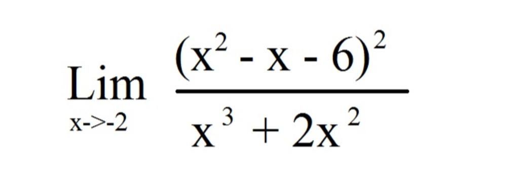 $\lim\limits_{x\to -2} \dfrac{(x^2-x-6)^2}{x^3+2x^2}$
