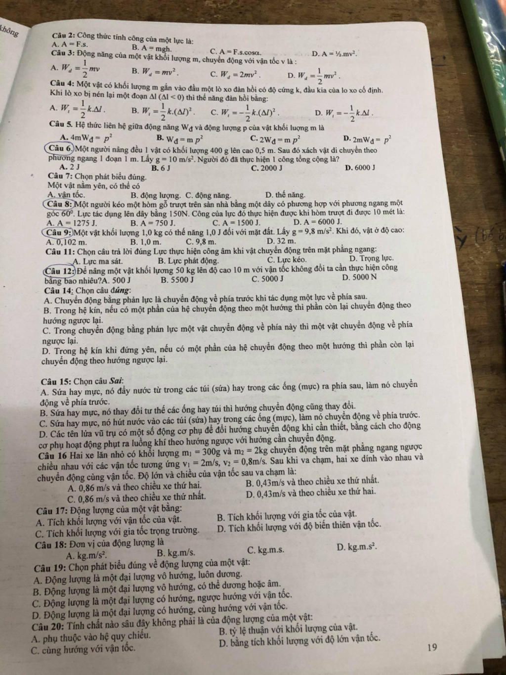 Câu 8 á giải ra là 2598J Nhưng sao lại chọn câu B là 750J ạ