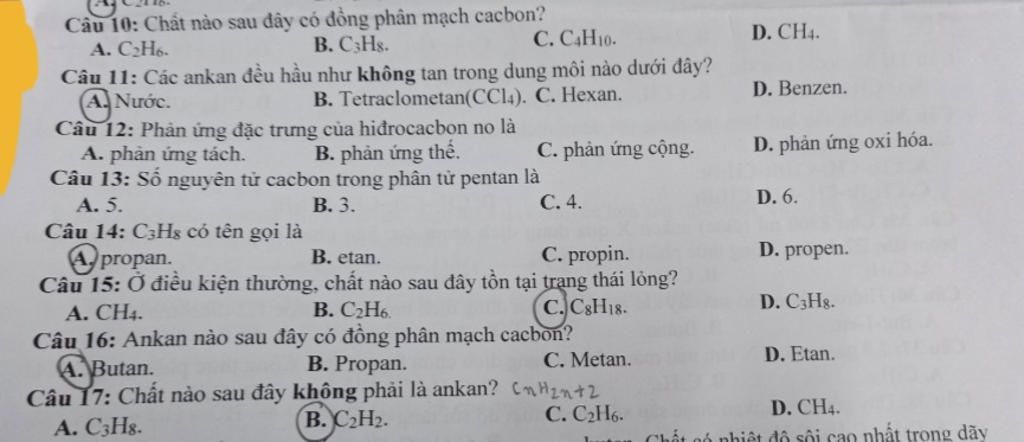 Từ $5C$ trở lên, ankan ở trạng thái lỏng hoặc rắn ở điều kiện thường.