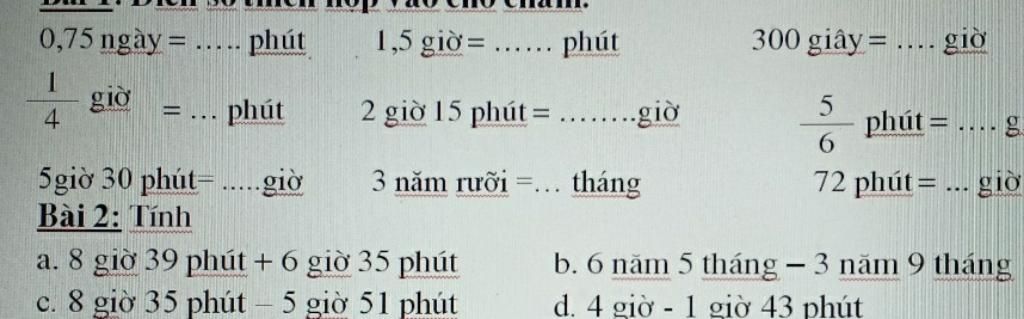 b. 6 năm 5 tháng - 3 năm 9 tháng = 2 năm 8 tháng