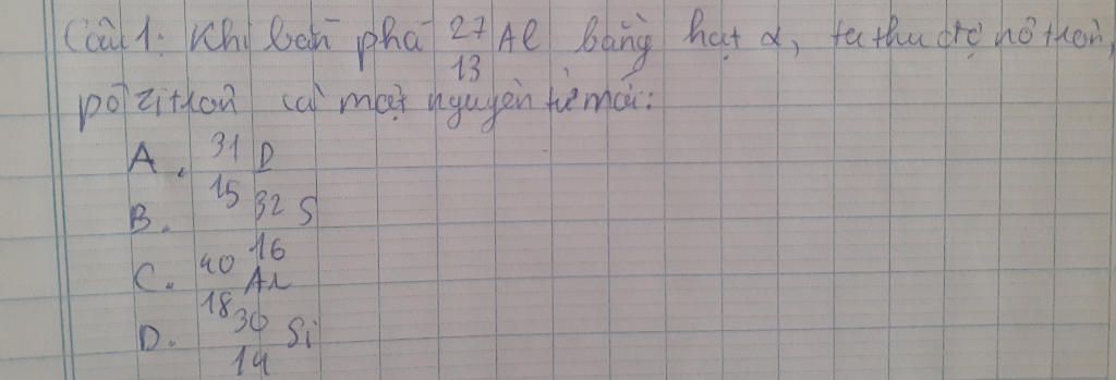 1)Khi bắn phá 27Al13 bằng hạt a, ta thu được nơtron, pôzitrôn và một nguyên tử mới: