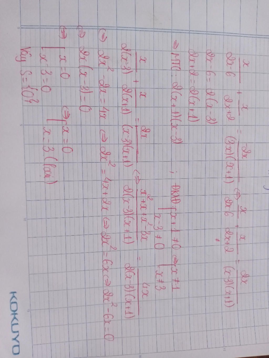 `<=> x/(2.(x-3)) + x/(2.(x+1)) = (2x)/((x-3).(x+1))`